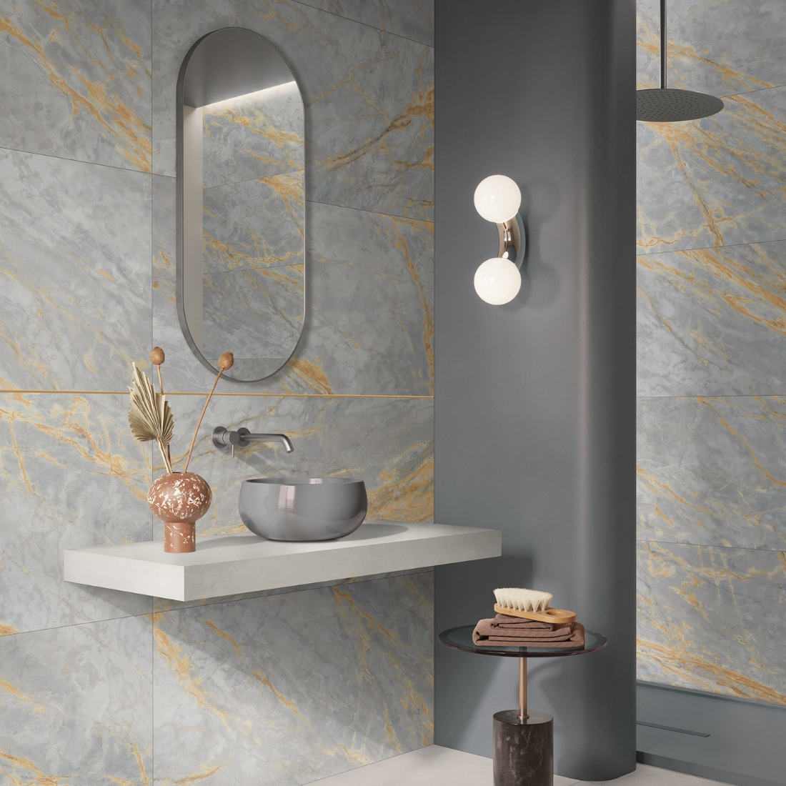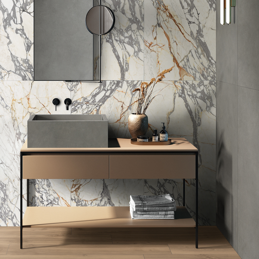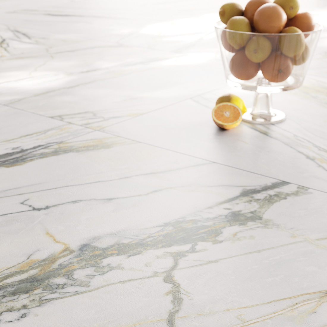 Cathedral is a beautiful marble-effect porcelain tile, with a satin finish. What sets it apart is the texture on the veins which gives it depth & interest, giving it a hugely realistic appearance.