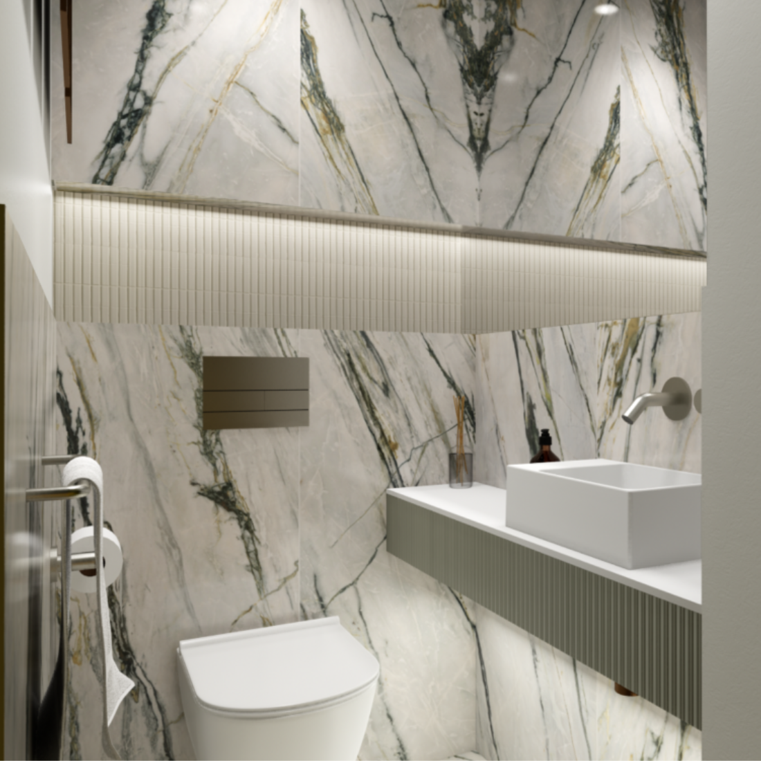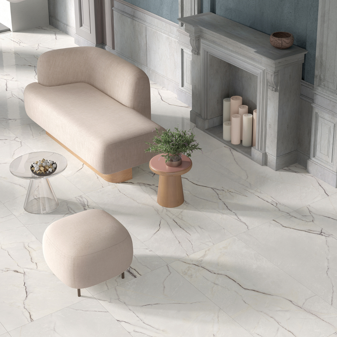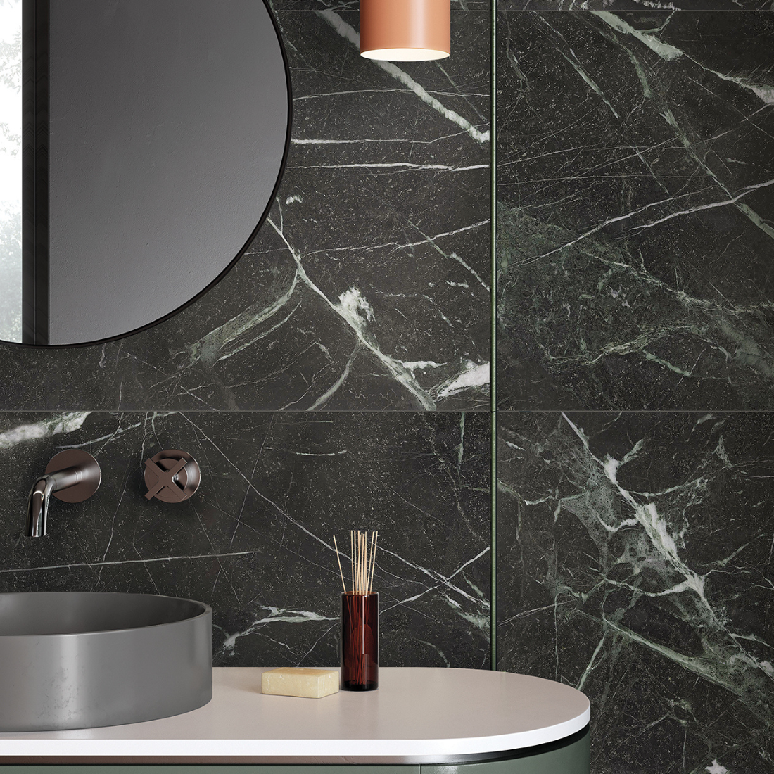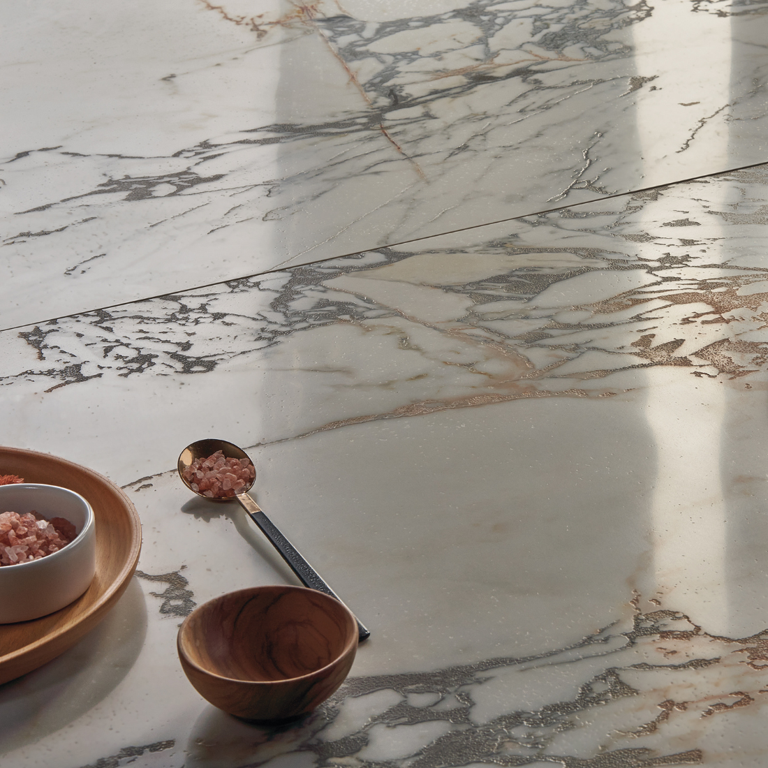 Cathedral is a beautiful marble-effect porcelain tile, with a satin finish. What sets it apart is the texture on the veins which gives it depth & interest, giving it a hugely realistic appearance.