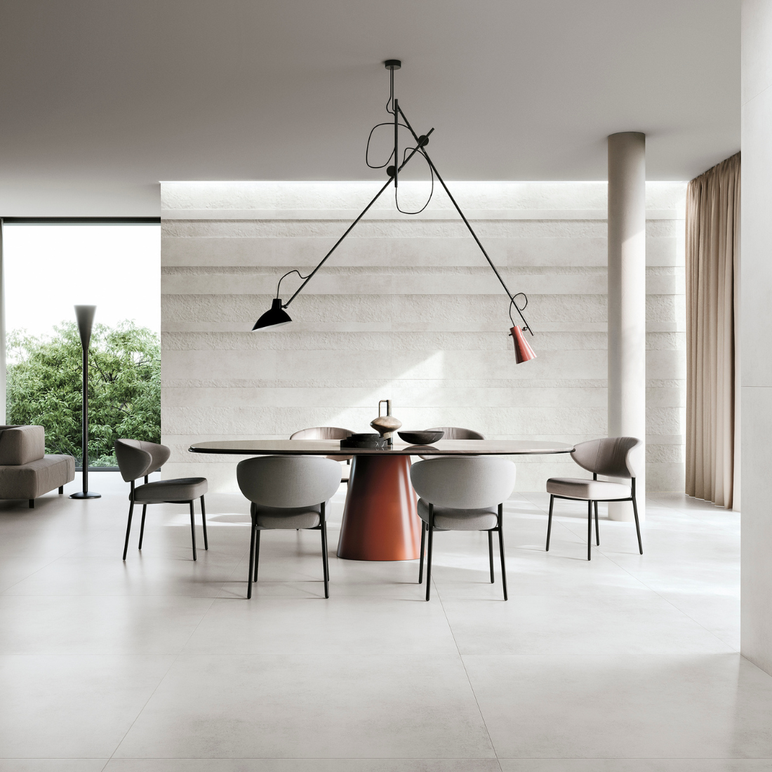 Touch White is an off-white porcelain tile with very subtle movement, it’s almost plain. It comes in three sizes with a 2cm version for use outside. It is very versatile and can be used on its own or with a more colourful patterned tile for a more dramatic effect. Suitable for kitchens and bathrooms, walls and floors, indoor & out.